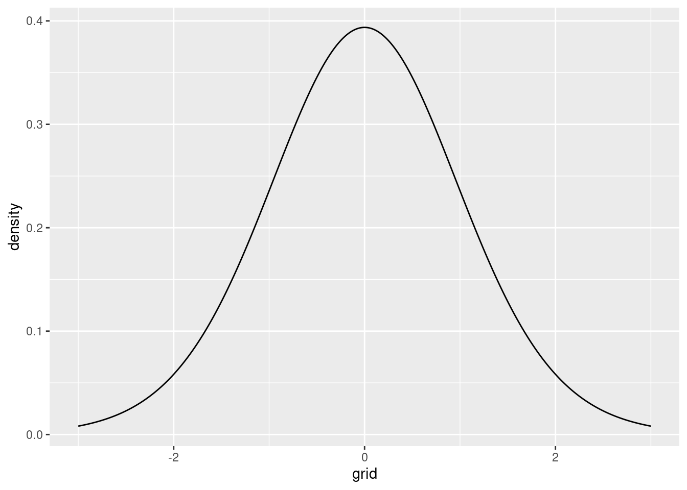 right_tail <- t_dist |>filter(grid >=as.numeric(t_statistic))left_tail <- t_dist |>filter(grid <-as.numeric(t_statistic))p2 +geom_area(data = right_tail,aes(x = grid, y = density), fill ="blue",alpha =0.3) +geom_area(data = left_tail,aes(x = grid, y = density),fill="red",alpha =0.3)